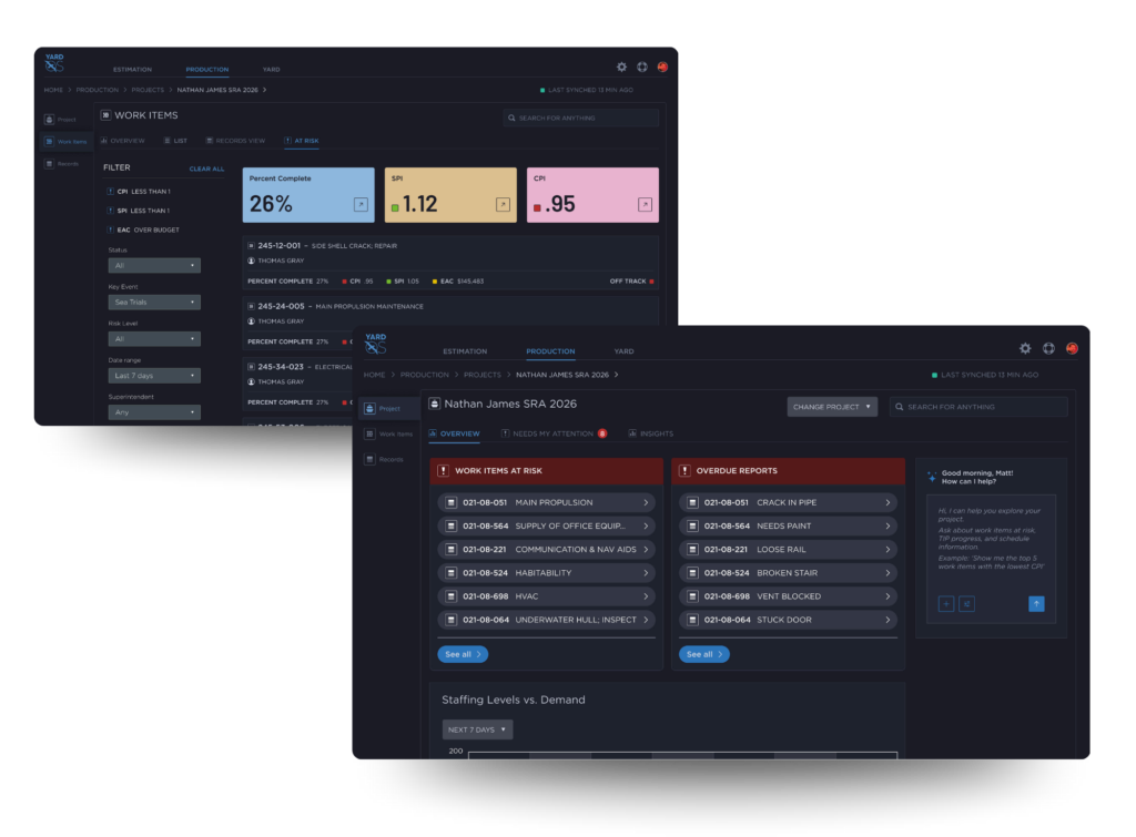 Our team brings deep experience in maritime MRO, government compliance (including NIST, CMMC, ITAR), and large-scale transformation programs. We understand the realities of shipyard work, the demands of government contracting, and the importance of reliability, security, and traceability.
